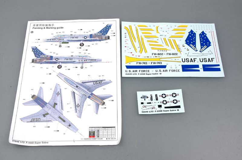 The North American F-100 Super Saber was one of the first supersonic aircraft to enter service in the US Air Force, being a direct successor to the F-86. The F-100 was characterized by an all-metal construction, in a large-skewed mid-wing configuration with a classic horizontal tail. Originally, the project that led to the creation of the F-100 was supposed to be only a modification of the F-86, but eventually, as a result of tests and trials in wind tunnels, it was decided to create a new aircraft. The flight of the prototype YF-100A took place in 1953, and a year later the machine entered service under the designation F-100A as an air superiority fighter. This version turned out to be very unlucky, as a result of accidents and disasters nearly 50% of the machines of this version were lost. After the problems were resolved, and mainly after the tail change, the subsequent C and D series were much less malfunctioning. Both versions were to act as fighter-bomber machines. The two-seater version of the F-100F was introduced almost simultaneously with the single-seater and was to fulfill mainly a training role. Due to the enlarged cabin for two people, the fuselage was extended, which, however, did not significantly affect the performance. After all, the F-100F played not only a training role, but was widely used in combat conditions, especially during the Vietnam conflict, when it carried out numerous attacks on North Vietnamese air defense points as part of the "Wild Weasel" unit. The F-100F passed its baptism of fire over the skies of Vietnam in November 1965. The F-100 was also exported to Taiwan, France, Denmark and Turkey. A total of 2,294 were built of all versions of the F-100. Technical data (version F-100D): Maximum speed: 1,390 km / h, speed of climb: 114 m / s, maximum altitude 15,000 m, maximum range: 3,210 km, armament: fixed - four 20mm Pontiak M39A1 cannons, suspended - up to 3,190 kg payload, including Mark 7, Mark 28, Mark 38, Mark 43 nuclear bombs.
