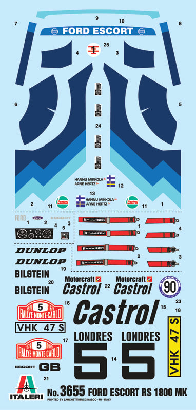The Ford Escort Mk 2 was launched in 1975. It was a significant evolution compared to the Escort Mk 1 that debuted at Brussels Motor Show in January 1968. It used the reliable mechanical components as the Mk 1 but adopted a new design based on a squared-style look able to be in line with the aesthetic and stylistic taste of the 70s. The product range was wide, declined in three body styles (2 doors, 4 doors and 3 doors station wagon), five type of engines and a significant variety of settings and configurations. The Escort Mk 2 was mainly produced in the Ford Group German plants and achieved a good commercial success. In addition to the more classic version, it was also released the Escort Sport version characterized by a more aggressive look and distinctive sport interiors. To compete, successfully, in World Rally Championship, a dedicated model, the RS 1800, was introduced to complete the line up. Successful results has been achieved. The team Waldegård Björn - Thorszelius Hans, that got the second place in the Wordl-famous Monte Carlo Rally in 1979, won the World Rally Championship at the end of the year. The Motosport team also achieved excellent results with the other team, ranked fifth in the Monaco 1979 sport event, formed by Mikkola Hannu and Hertz Arnee.