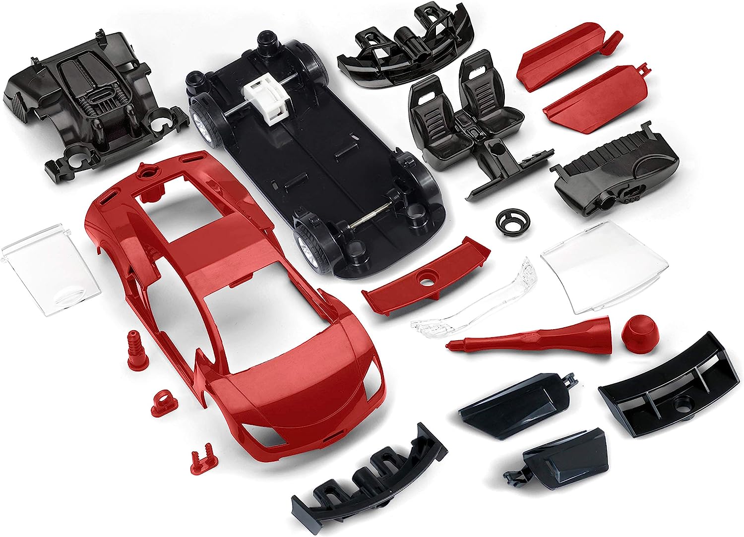 Simply pull back and the Junior Kit racing car gives real gas! First the vehicle is assembled with the well-known Junior Kit screw system and then the recoof engine provides for cool racing duels. With the included tuning parts, the look of the vehicle can be changed again and again. Simply loosen a few parts with the Junior Kit screwdriver, replace the tuning parts and continue the journey in a new look.
