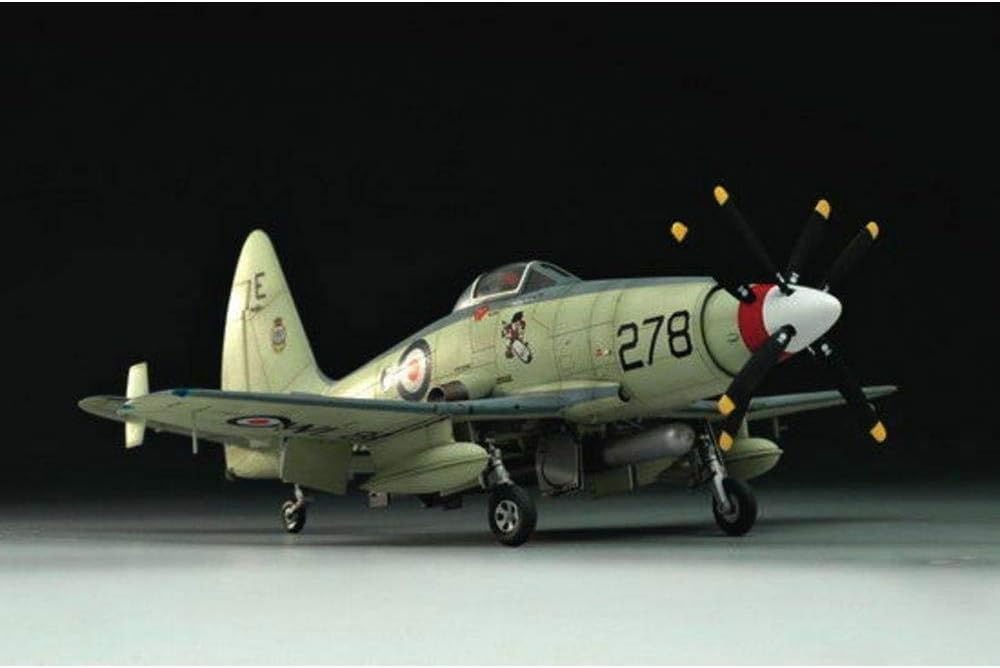 The Wyvern prototype was first flown in 1946, and was found to have a very respectable performance with a top speed of 456 mph, despite being considerably heavier than a DC3 transport plane. Unfortunately the teething problems which were the bane of the Wyverns existence began to manifest themselves, arising from the enormous engine and propellor overhang causing bending of the propellor shaft and associated problems. At about this time the British Government ordered Rolls Royce to abandon development of the Eagle to concentrate on gas turbine development, and as as result the Wyvern became an airframe in search of an engine. The Python was an older design and lower-powered (3760 hp), with a 14-stage axial compressor. The first Python-engined Wyvern TF.2 was VP109 and flew on 22 March 1949, and twenty Python-engined TF.2s were built. Carrier trials began on 21 June 1950. Four converted and 87 new-built aircraft were delivered of the most important Wyvern version, the TF.4, later renamed S.4. The TF.4 had numerous small changes. The recognition characteristic was the cut-off engine inlet, the propeller spinner then protruding much further forward. Small rectangular fins were added to the tailplane, changes were made to the ailerons, Martin-Baker Mk. 2B ejection seats were installed, and the cockpit was reinforced. Later modifications included perforated dive brakes, a flat windscreen, and provisions for tip tanks. The Wyvern entered service with 813 Sqn in May 1953, replacing the Firebrand. 813 Sqn was based later on the Eagle and the Albion. Other Wyvern units were 827, 830 and 831. In November 1956 the 830 and 831 Squadron took part in the Suez campaign. Only 830 seems to have made combat flights, losing 2 aircraft in 79 sorties. In March 1958 the last Wyvern unit, 813, was disbanded. Total Wyvern production had been 127